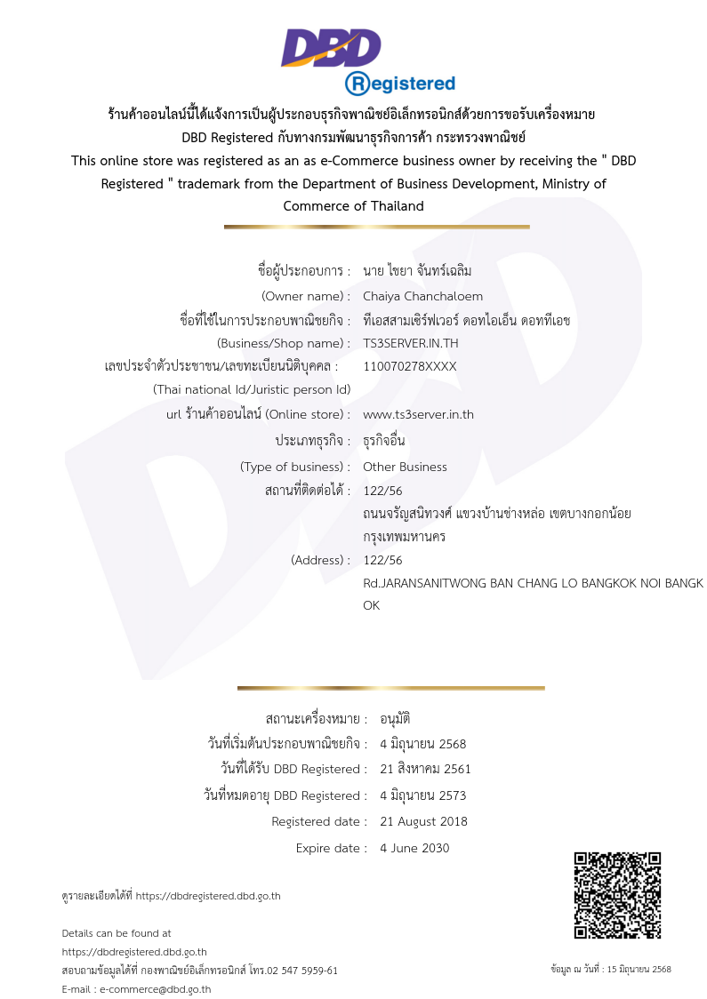 ตรวจสอบลิขสิทธิ์ของ TS3SERVER.IN.TH ทดลองใช้งาน SERVER ฟรี